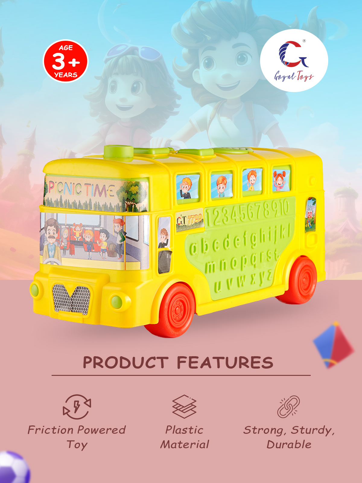- Quality : The Goyal Toys is constructed of non-toxic plastic material. It is absolutely safe for children. The friction-powered toy is typically sturdy and durable, ensuring they can withstand the rough play and handling of young children. They are commonly made from materials like plastic , providing longevity and resistance to wear and tear.