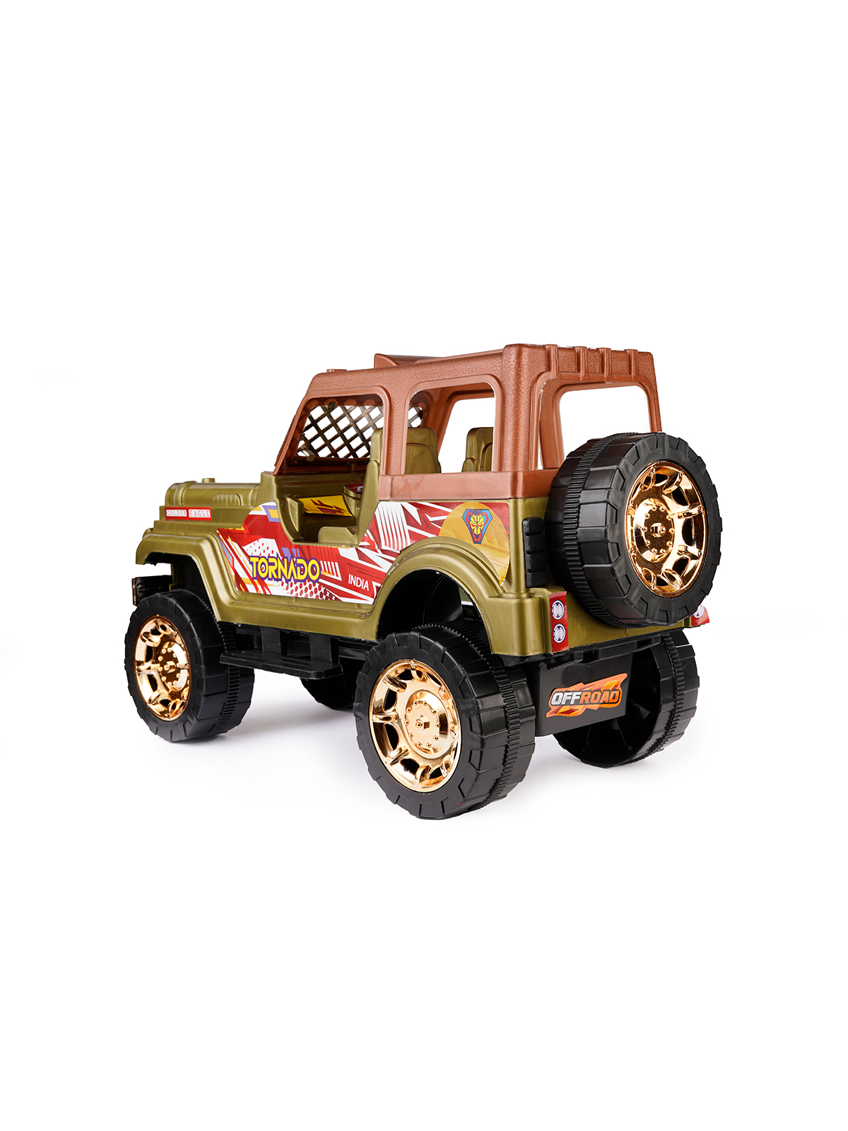 GOYAL TOYS Friction Powered Tornado Olive Green Jeep Toys For Children Kids Boys & Girls | Push & Go Forward | Off-Road Toy Car | Birthday Gift | Age 3+ Years