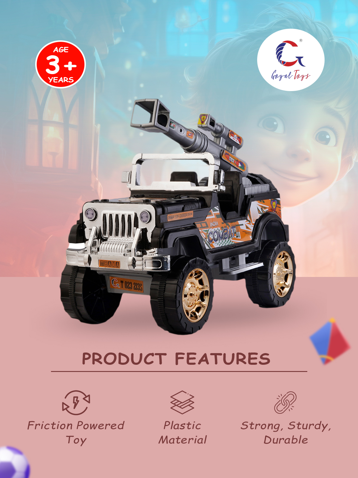 GOYAL TOYS Friction Powered Launcher Black Jeep Toys For Children Kids Boys & Girls | Push & Go Forward | Off-Road Toy Car | Birthday Gift | Age 3+ Years