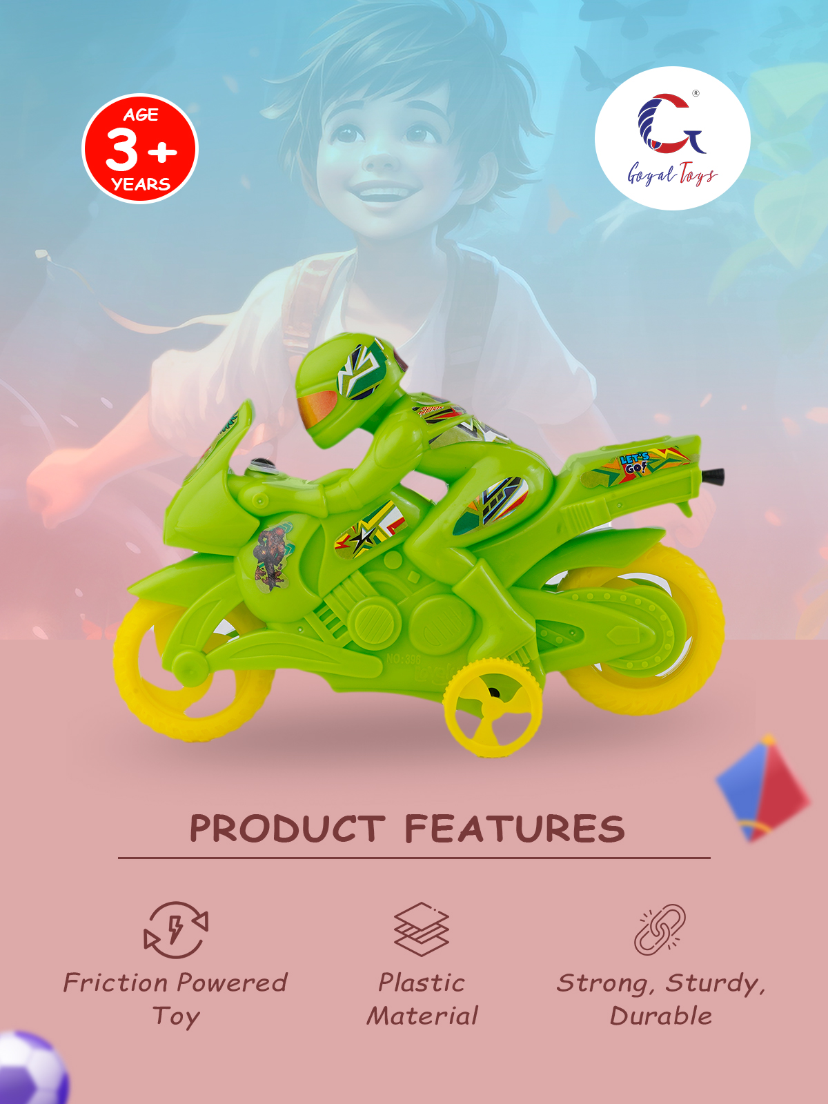 - Engaging and interactive : The Friction Bike is an engaging toy. Perfect for children . Children will be captivated for hours of enjoyable playtime with its ideal combination of teaching and enjoyment.Kids may take these toys everywhere they go because of their lightweight construction and small size, which make them easy to handle. Ideal for both indoor and outdoor play.