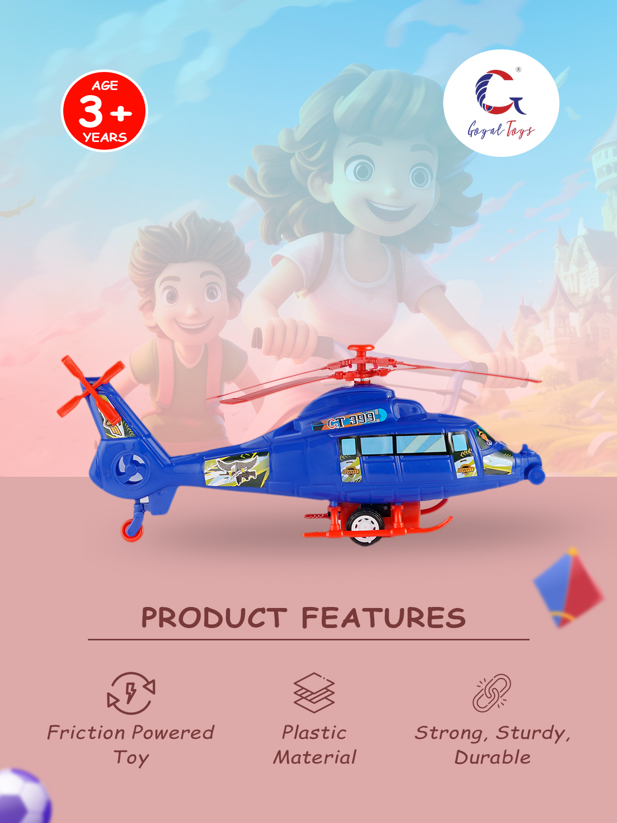 - Quality : The Goyal Toys is constructed of non-toxic plastic material. It is absolutely safe for children. The friction-powered toy is typically sturdy and durable, ensuring they can withstand the rough play and handling of young children. They are commonly made from materials like plastic , providing longevity and resistance to wear and tear.